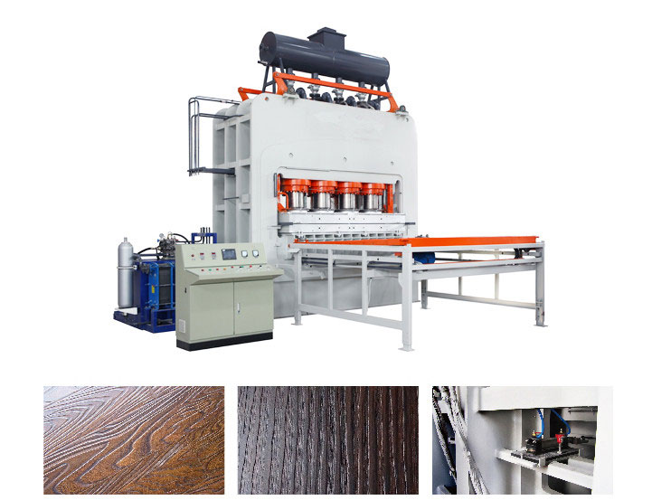 指模板花纹与纸张纹路纵向型快速贴面生产线相同,在经相对应压制后产品真实感更强!主要用于高档强化地板与三聚氰胺贴面板的压制,使用气动定位装置,可方便操作。